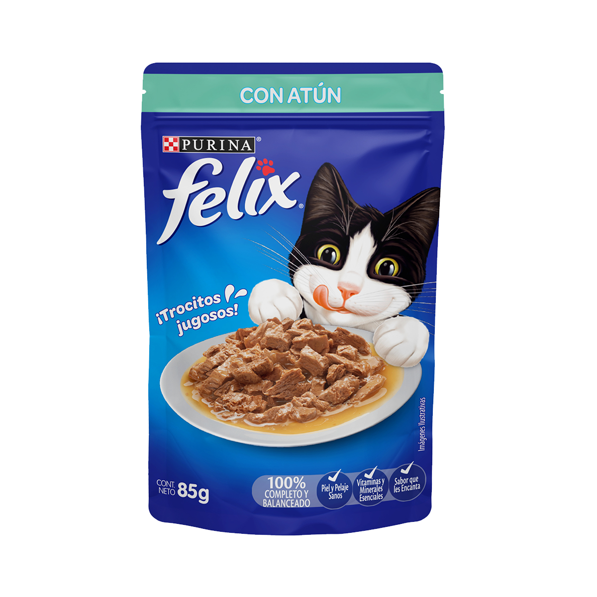 Cada porción de Purina® Felix®, es un una deliciosa combinación balanceada que satisfacerá el 100% del requerimiento nutricional de tu gato adulto. Contiene vitaminas D y E, una combinación de minerales, Omega 6 y proteínas. Hechos con ingredientes de la más alta calidad.