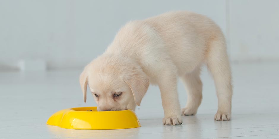Para el adecuado crecimiento de los perritos bebés, la nutrición es clave. Cachorro de labrador comiendo. Para el adecuado crecimiento de los perritos bebés, la nutrición es clave. Cachorro de labrador comiendo.