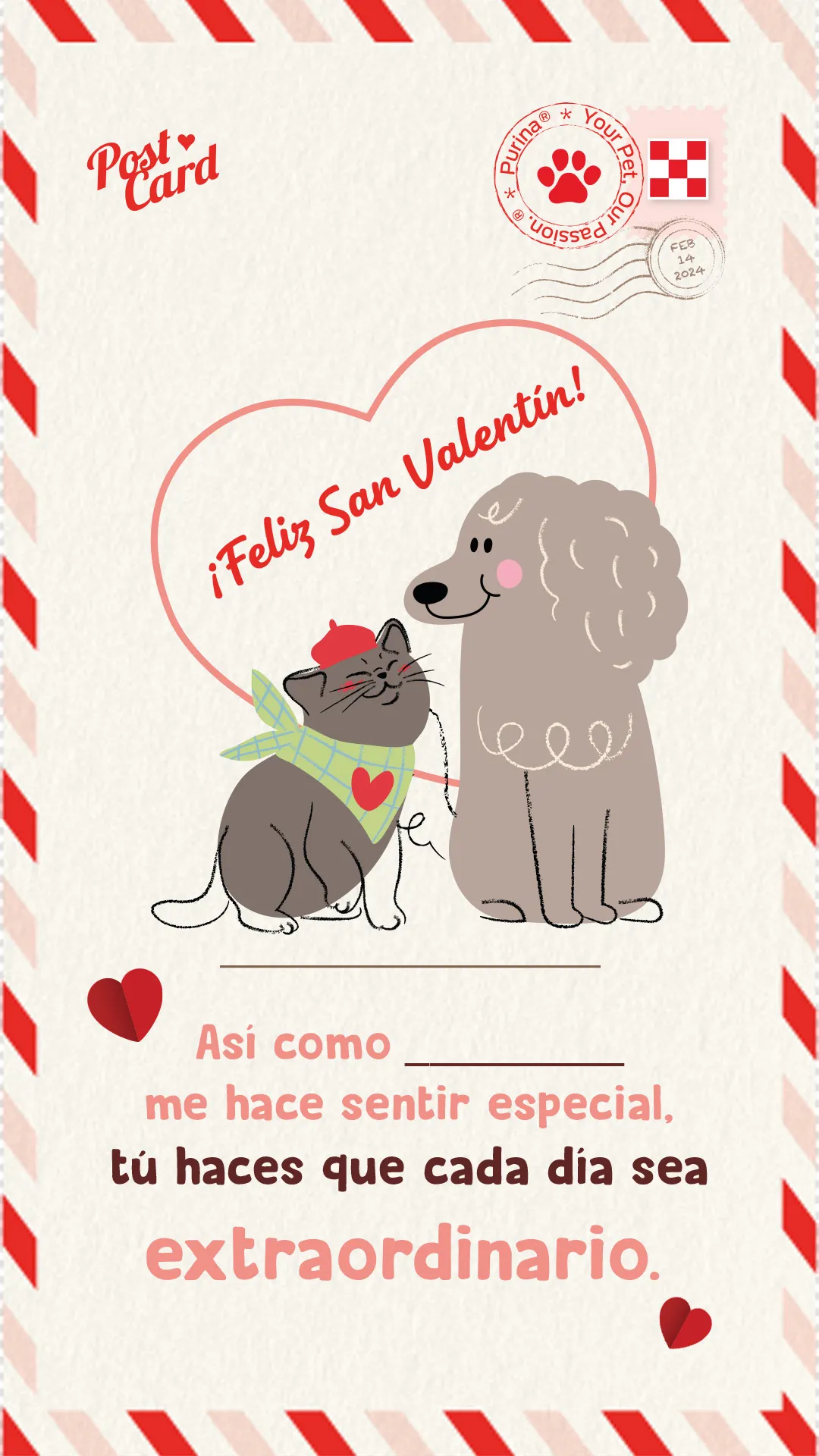 Diles cuánto los amas de una forma muy original Amor en cada detalle: Este San Valentín, sorprendé con algo único y especial. Descarga e imprime DESCARGA E IMPRIME Postal de amor perruno DESCARGA Y COMPARTE Postal de amor gatuno DESCARGA Y COMPARTE Postal de amor mascotero DESCARGA Y COMPARTE